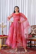 This set is ideal for formal occasions like weddings, receptions, or festive gatherings. The combination of the soft organza fabric with printed or embroidered details creates a sophisticated yet playful look that exudes elegance and charm.