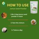 Mix 1 serving (5 gm) of the powder with water, smoothies, soups, or juice. To make Jamun shots, add 4 grams of powder to 1 glass of water. You can also sprinkle Jamun Seeds Powder over your salad, pasta, soup, and other recipes.