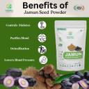 Jamun seed powders are best known for their ability to regulate blood sugar level. It contain compounds called jamboline and jambosine that reduce the rate at which sugar is released into the bloodstream. Jamun seeds also increase the production of insulin.