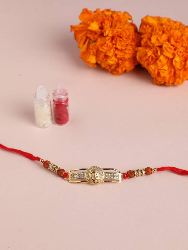 Rakshabandhan is a beautiful festival which is celebrated all over India with lots of joy and happiness. This is the time for a get together celebration with your siblings and close once. Let’s celebrate this unbreakable bond with Niscka Rakhi. This is a beautiful 18k gold plated Om designer rakhi with Zirconia embedded in it. This is a band style rakhi for your loved ones. Your siblings will surely love the design and quality. Includes- Designer Rakhi, Roli and rice