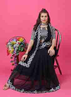 Zenophily Embellished Bollywood Georgette Saree Black