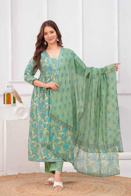 NISHA FASHION Floral Print Anarkali Kurta, Bottom & Dupatta Set