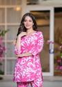 Featuring a delicate floral print, this kurti and palazzo set adds a touch of elegance to any outfit. The intricate floral design makes it an ideal choice for garden parties and daytime events, where the playful pattern enhances the overall look. And, the vibrant flowers and harmonious colours create a visually appealing outfit and allow for effortless coordination with accessories. You might pair it with a simple necklace and sandals to achieve a stylish, cohesive look that stands out.
