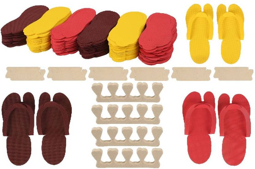 Nishi Assorted Pedicure Flip Flops Disposable Slippers & Toe Separators 24 Pairs Women Slippers (Yellow, Brown, Red , 8)