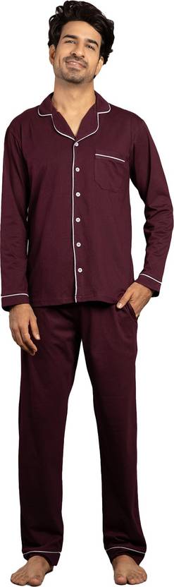 NITE FLITE Men Solid Maroon Top & Pyjama Set