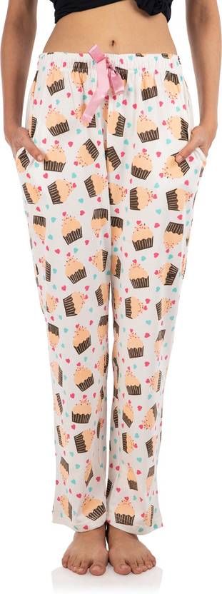 Ladies, one word for these pajamas: delish! Grab these super-adorable cupcake-printed PJs from Nite Flite today! Made of soft cotton knit, this pastel pair features elasticized waist and contrast spun satin bow. Perfect for lazy weekends!