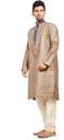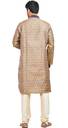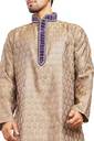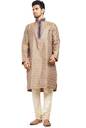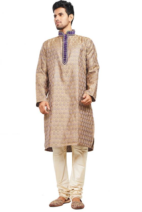 Look your ethnic best wearing this smart coloured kurta with pyjama for men from the fashion house of Nite 'N' Day. Made from jacquard fabric, this regular-fit kurta and pyjama provides a complete look. It has an embroidered banded collar and neck. And has self woven work on the body.