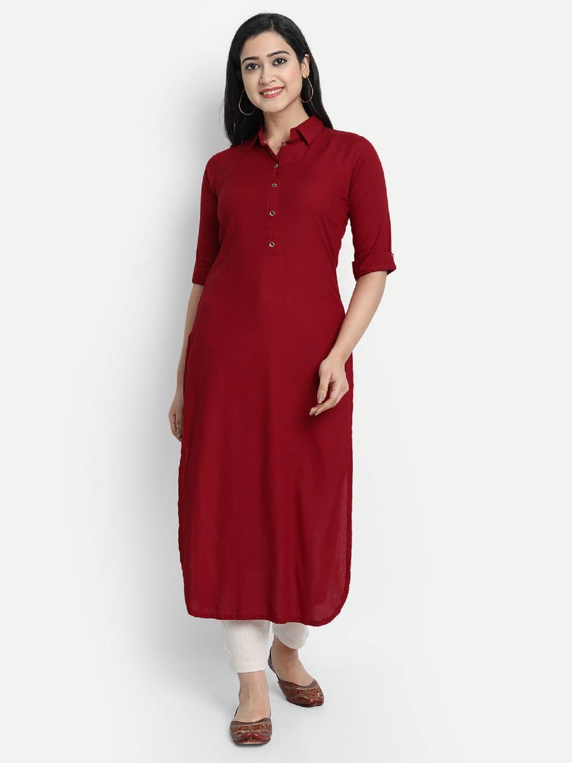 HSD Women Solid Straight Kurta (Maroon)