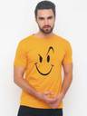 Men Printed Round Neck Cotton Blend Yellow T-Shirt