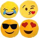 Nitsha Polyester Fibre Decorative Cushion Pack of 4 Diwali Gift Emoji Stitching 32 CM Pillow (Yellow)