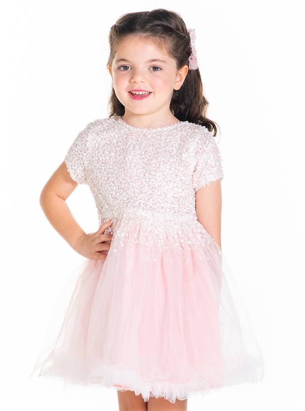 Nitt Hyman - Cherry Crumble Girls Above Knee Party Dress (Pink, Short Sleeve)