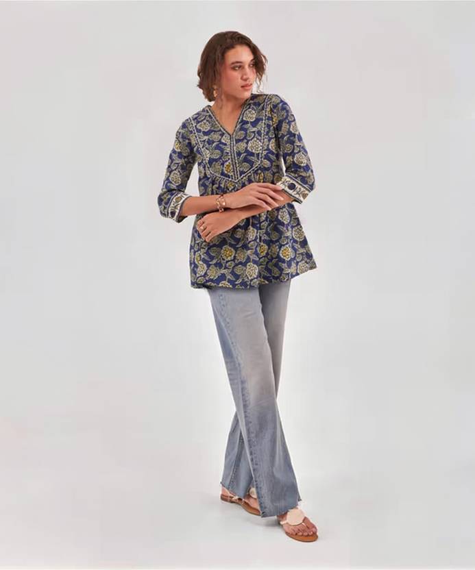 Nitya Feb Women Printed Straight Kurta (Blue)