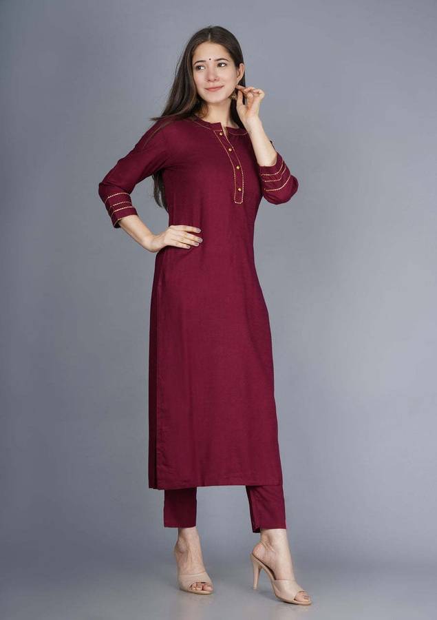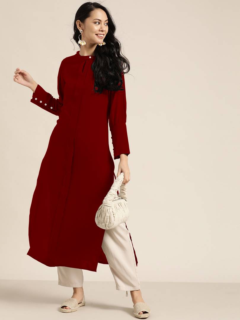 WOMEN VILLAGE Women Solid Viscose Rayon A-line Kurta (Maroon)