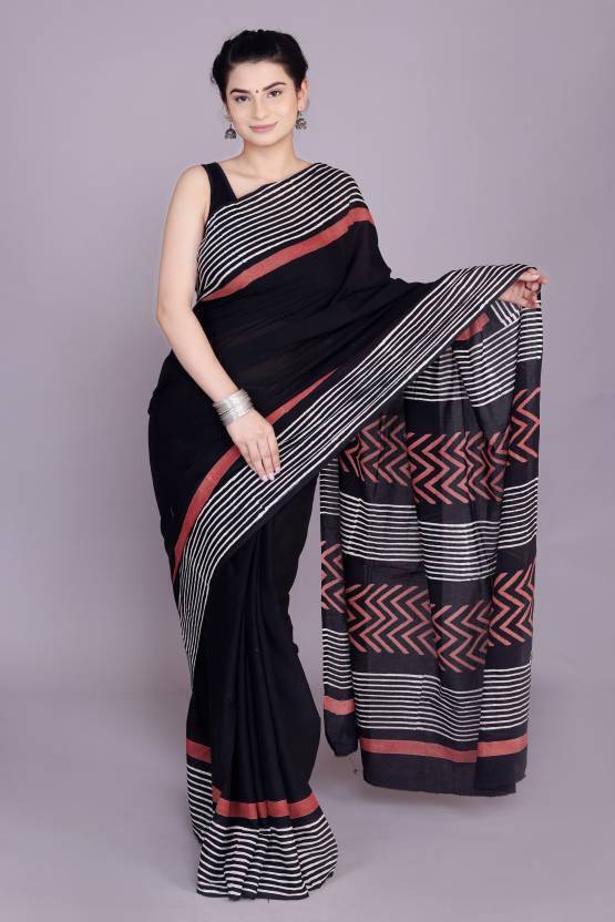 Nivanya HubΒ Printed Daily Wear Pure Cotton SareeΒ Β (Black)