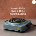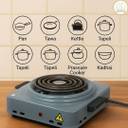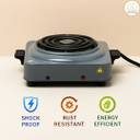 | Key Features | - 1000W Efficient Heating – Ideal for small meals, tea, coffee, boiling, and reheating food., Portable with Side Handles – Easy and safe to carry even when hot., Energy Efficient Coil – Provides consistent heating with low power consumption, Elegant Black Finish – Sleek, modern design to suit any kitchen., Safe & Convenient – Heat-resistant body, indicator light, and stable base., Multi-Purpose Use – Perfect for home, office desk, hostel, PG, camping, and travel cooking needs., Multi-Purpose Use: