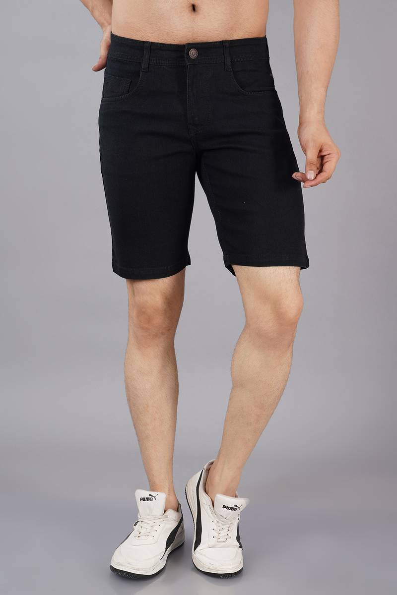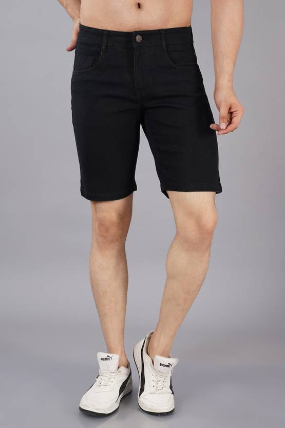 NIVASU Solid Men Black Denim Shorts