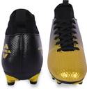 The ultimate gold/black finish on shoes stands out on the ground, made for players who really want to outshine and perform well in the game. Ashtang shoes are built to help players be faster and have top-notch control on the ball to win the game. PU synthetic leather with knitted collar rib and TPU film . The TPU embossed toe front offers excellent ball control and tackling. The upper will encase each foot in durable comfort. It creates a better, healthier environment for your feet to thrive in. The Fusion Technology construction produces an irritation-free fit by reducing bulk, layers, and weight lacing system works to deliver an anatomically correct fit. Two layers of high-density foam line the collar and mould to the athlete's foot to create a personalised heel fit,adding soft support and custom comfort. standard adjustable nylon lace. A moulded, removable E.VA (SPORTHO FOOT FIRM ) sockliner exists as an extra layer of plush,step-in comfort. The pre-molded TPU light weight insole adds comfort and grip. The TPU sole provides excellent stability and traction.