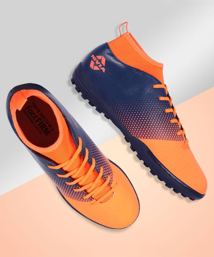 The NIVIA Ashtang Turf shoe is ideal for playing on synthetic turf and hard ground. It sculpts to your foot shape with grace and delivers explosive speed and reliable grip on turf. So, hold on to your creative instincts and amplify your performance with a precise touch. UPPER-PU Synthetic leather with knitted Collar rib and TPU film .The TPU embossed toe offers excellent ball control and tackling. The upper will encase each foot in durable comfort. It creates a better, healthier environment for your feet to thrive in. The Fusion Technology construction produces an irritation-free fit, reducing bulk, layers, and weight lacing system works to deliver an anatomically correct fit,Two layers of high-density foam line the collar and mould to the athlete's foot to create a personalised heel fit,adding soft support and custom comfort. standard adjustable nylon lace. A moulded, removable E.VA (SPORTHO FOOT FIRM ) sockliner exists as an extra layer of plush,step-in comfort. Die cut Lightweight insoles provide more comfort and grip. Rubber Studs deliver ultimate traction and deliver superior stability and an outsole specially designed for artificial turf surfaces.