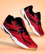Nivia Battledore Badminton Shoes is the best pair of badminton shoes when you strive for success.It's Non-marking Multi Directional outsole provides you fabulous grip on court and allows smooth movements and transfer of maximum energy during the game. UPPER -Breathable mesh stitched with PU coated SyntheticUpper. For better fit and comfort .inner stitching provide more support and fit.Two layers of high Density foam line the collar and mould to the athlete's foot to create a Personalised Heel Fit,adding soft support and custom comfort. Die-Cut soft EVA sockliner laminated with Polyester fabric for better Cushioning. Soft cushion EVA Inner insole provide better Cushioning. Duofoam Midsole - Resides in the midsole to supply the lightweight cushioning. 15 % more responsive than standard EVA, Resilience whilst infuses every stride with the kind of power you need for a game. Non-marking Multi Directional outsole structure Sole -outsole is equipped withMulti Directional pattern provides you fabulous grip on court and never let you down.The Sole is designed to provide all-around support for quick and smooth footwork. The OutSole ensures smooth movements and transfer of maximum energy. Outsole stitching on sole lip provides support on forpart.