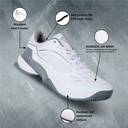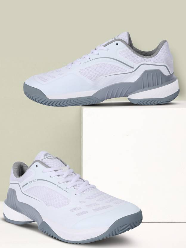 NIVIA RAY 2.0 Court Shoes On the court, you need a variety of skills to defeat your opponent; speed, agility, and tactic come from within, but stability, grip, and support come from your shoes. The RAY 2.0 is an indoor court shoe made for tennis and other fast-paced court sports. Upper-Seamless Air mesh , TPU upper designed with areas of support and stretch to help ensure a custom fit that adapts to every move. fit-Soft and stretchable tongue for a comfortable fit; construction for a snug fit; A moulded removable P.U(SPORTHO FOOT CUSHION) sock liner exists as an extra layer of plush, step-in comfort. The soft cushion NR EVA inner insole improves cushioning and comfort. The sole is rounded and has a herringbone structure. Ray 2.0 has a rigid midfoot shank that is attached with Phylon and Flexipro technology. Rubber outsole for midfoot support and stability, as well as extra freedom and flexibility in the forefoot; Phylon under the heel for superior impact cushioning; outsole provides the ultimate in high-wear durability. The midfoot TPU shank stretches out under the arch to increase stability It strengthens the middle section of the sole, preventing it from twisting.
