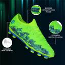 Nivia SHASTRA football shoes feature an updated design and raised patterning to help create optimal spin to control the flight of the ball. Off-center lacing provides a clean strike zone for skillful dribbling, passing, and shooting. Upper-Nylon knitted + thin TPU construction wraps your foot in stretchy yarns for a light weight film that helps to control the ball and sock fit. Fusing Technology makes the upper light-weight and flexible. Nylon + TPU skin offers excellent ball control and tackling. The upper will encase each foot in durable comfort. It creates a better, healthier environment for your feet to thrive in. The Fusion Technology construction produces an irritation-free fit by reducing bulk, layers, and weight lacing system works to deliver an anatomically correct fit. A moulded removable ( ORTHOLITE ) eco-friendly sockliner exists as an extra layer of plush,step-in unique comfort and performance. The pre-molded TPU light weight insole adds comfort and grip. The high shear strength TPU sole delivers superior stability and traction. The studs deliver speed and quick movement in all directions. Ideal for multi-purpose grass fields.