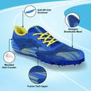 Nivia Track and field-100 The spikes have a breathable mesh upper to keep your feet cool and comfortable with a lightweight TPU stitchless upper when the pace heats up. Asymmetrical lace design for snug fit, supportive tpu sole plate. ideal for short sprints. TPU Fusion Technology in a hexagon breathable mesh upper for long-lasting comfort. It creates a better, healthier environment for your feet to thrive in. The Fusion Technology construction produces an irritation-free fit, reducing bulk, layers, and weight high breathable Hexagonal breathable mesh is light in weight and allows you to move quickly. Two layers of high-density foam line the collar and mould to the athlete's foot to create a personalised heel fit,adding soft support and custom comfort. The Die-Cut soft NR EVA sockliner is laminated with polyester fabric for additional cushioning. The soft cushion NR EVA inner insole improves cushioning and comfort. Take flight in our TF-100, featuring a rapid agility soleplate for supreme energy return and eight removable spike pins of regulation length on each boot. suitable for short sprint events.