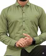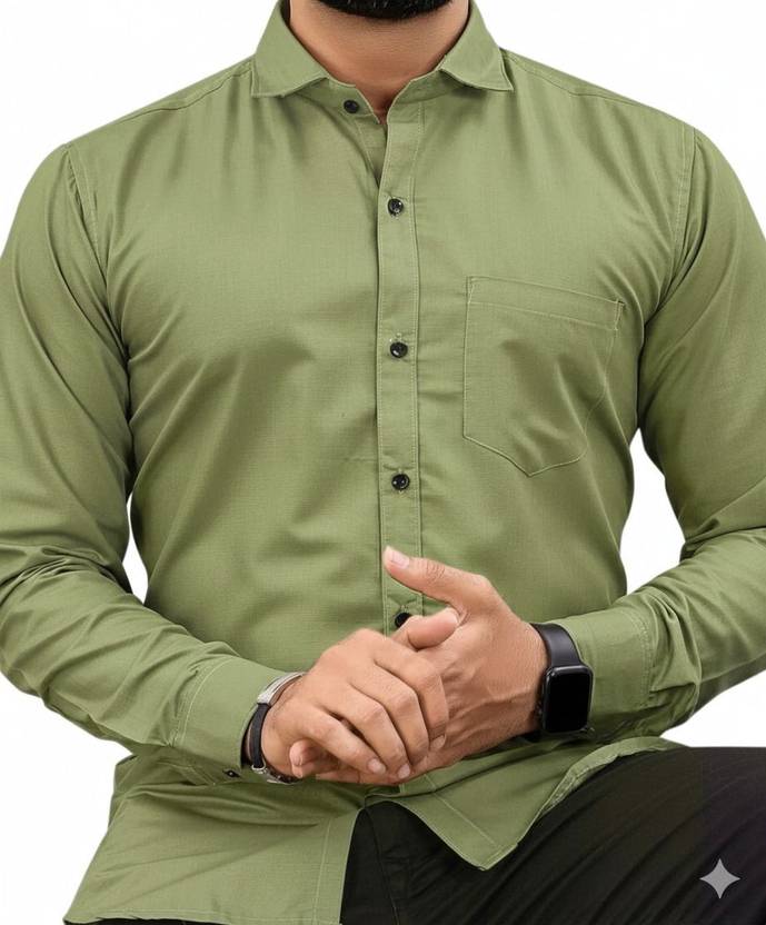 KD FASHION Men Solid Formal Green Shirt
