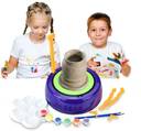 Unique DIY pottery wheel kit designed to cultivate a sense of art in your child. Your child can now make unique clay designs and unleash their creativity. A great product for endless fun, your child can now experiment with different colours. It also teaches them to be patient and concentrate on the task at hand. The battery-operated pottery wheel contains clay (800 gms), pottery wheel, pottery plate, 2 sculpting tools, colour tray, cutting cord with grips, 6 colours acrylic paint, 2 genuine hair brushes. So you have all you need to create pottery items and decorate them as you please. Product features children's DIY pottery wheel kit for making handmade clay pot designs developing artistic skill and talent in your child. 2 Different speeds for better control over the pot making. Environment friendly, enjoyable and educational. Best Birthday,Festival,School Project,Gift For Your Kids Boys And Girls