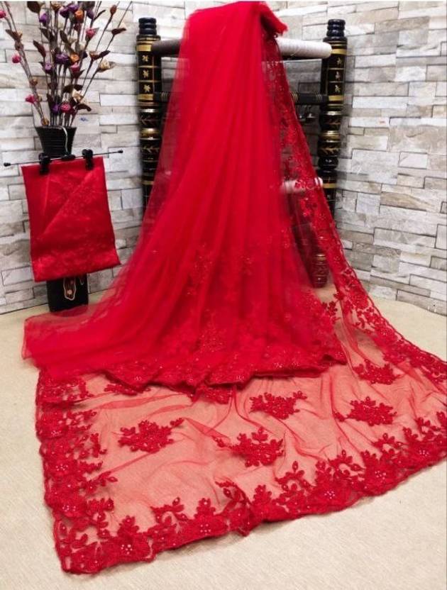 NIYANTAKSH Embellished Bollywood Net Saree (Red)