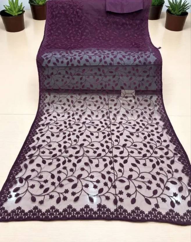 Floral Print Bollywood Net Saree (Purple)