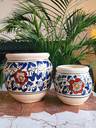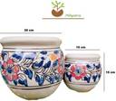 Niyara white & blue 8 & 6 inches combo ceramic planters pot Plant Container Set (Pack of 2, Ceramic)