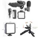 Create professional-quality videos and live streams anywhere with the 6-in-1 Vlogging Kit for All Phones. Designed for creators, influencers, and professionals, this kit includes everything you need for stable shots, clear audio, and bright lighting. The adjustable tripod ensures steady recording, while the LED video light provides perfect illumination in any environment. A cardioid microphone captures crisp, focused sound, and the phone clip keeps your device secure. With a Bluetooth remote for hands-free shooting and a microphone cable for easy connectivity, this kit is perfect for live broadcasting, video calling, online teaching, and content creation on the go.