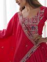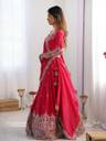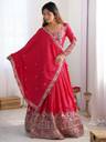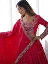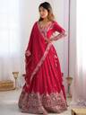 This GEORGETTE Lehenga Choli with Dupatta Set features exquisite Sequins With zari embroidery, enhancing its regal appeal. The deep hue is adorned with intricate golden threadwork, creating a luxurious contrast. The lehenga boasts a heavily embroidered border, while the choli has detailed sleeve embellishments for an elegant touch. The matching dupatta, with delicate motifs and pearl lace edging, adds a graceful charm. A perfect blend of tradition and modern elegance, this set is ideal for festive and wedding occasions.