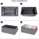 FLEXIBLE FOLDING DESIGN: The Flexi Fold feature allows these baskets to expand and collapse effortlessly, making them a versatile solution for various storage needs. When not in use, they can be neatly folded away. ?EASY TO USE?:The rectangle storage basket is easy to assemble and fold up. Just hold up or fold down the steel frames on long sides. When the clothes organizer is dirty, we recommend spot cleaning with light soapy water and a soft dry cloth. Do not wet the base plate with water. DURABLE METAL FRAME: These wardrobe organizers feature a sturdy rectangular metal frame construction for long-lasting use and support. These baskets are built to last, thanks to their robust metal frames. They maintain their shape even when filled to capacity, ensuring your items remain well-organized. EASY CARRYING: Feature a sleek modern design with 2 sewn-in handles, simple, practical and easy carrying from here to there. Perfect for cupboard or linen closet storage. ?SIMPLE AND DELICATE?This pants closet organizer is minimalism, great storage for your wardrobe. Using these pants storage organizers, your closet will transform from utter chaos to categorized in just a few minutes. STORAGE:It can be used as wardrobe organizer, bra organizer, etc, great storage solution for pants, T-shirts, sweaters, bras, scarves, short skirts and so on. Also, by lidless design, you can find clothes, toys, towels, magazines, or beauty products at a glance, without rummaging around.