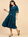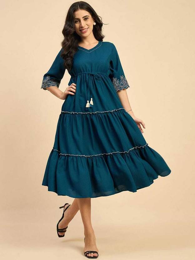 NKRM Women Solid Flared Kurta (Blue)