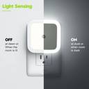 This night light features a smart ambient light sensor that assesses the surrounding light conditions from dusk to dawn. It automatically adjusts its brightness levels based on the ambient light, ensuring optimal illumination. When the room is well-lit, the night light turns off to conserve energy, but it activates in darkness to provide guidance and safety. The sensor also dynamically adjusts the brightness depending on the darkness level.