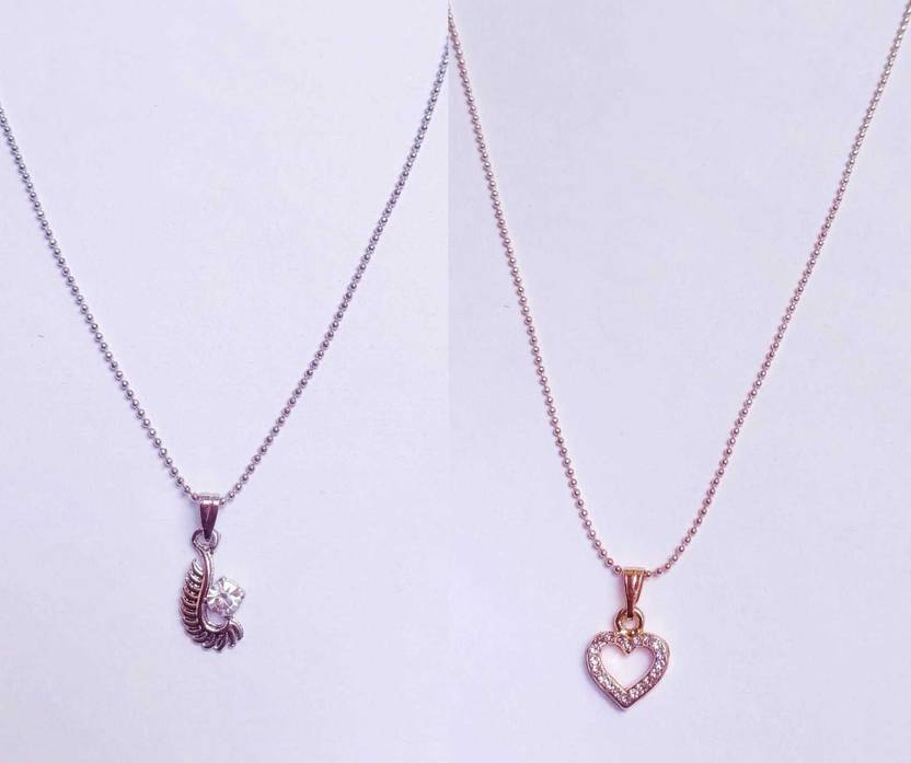 Rose Gold & Sliver Heart & Leaf Shape Pendent with Chain Pack Of 2 Alloy Necklace