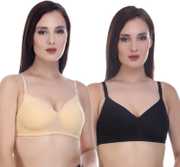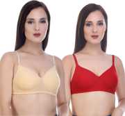 Pack of 2 Women T-Shirt Lightly Padded Bra (Black, Red)