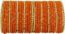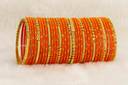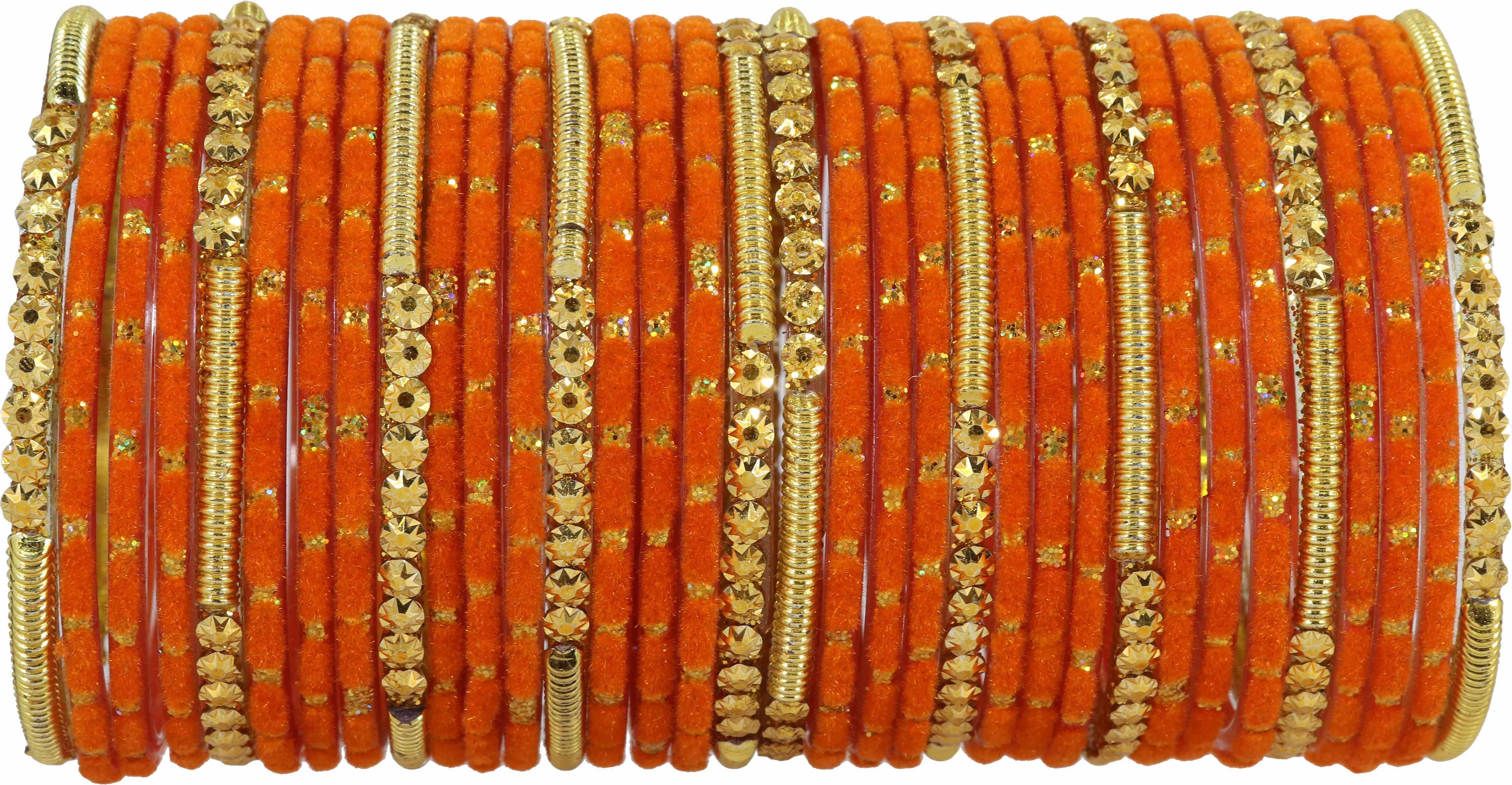 NMII Glass with Velvet worked Bangles, Beads Adhesive spreads with Glitter Bangles, Pack of 34 bangles