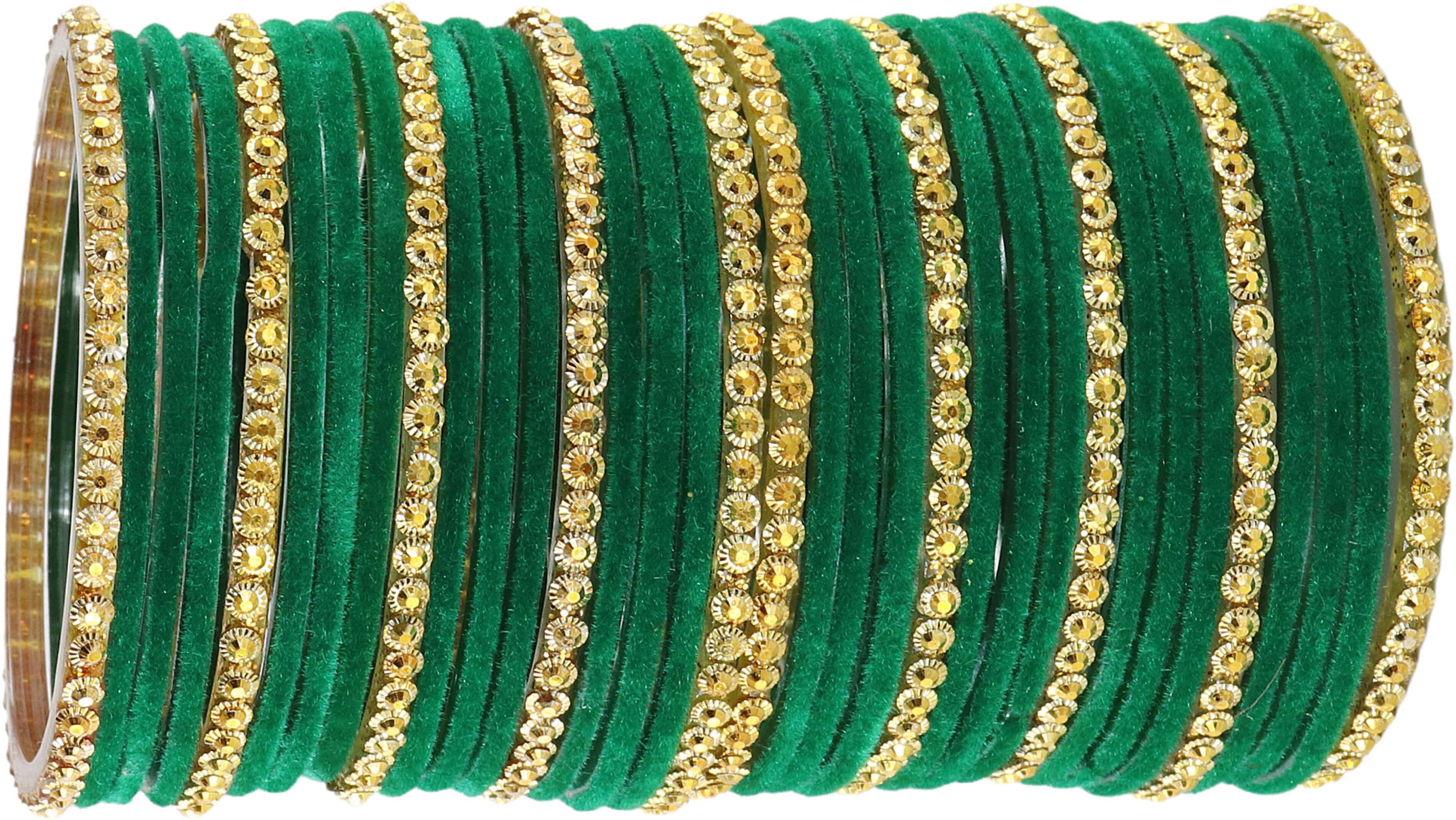 NMII, Features Glass Material with Golden Beads Studded Trending design Velvet Bangles Set for Women and girls. This Designer Bangle Set will Enhance The Beauty of your hands. These bangles are part of NMII's latest collection and are Made of Good Quality Glass Material. These Stylish Bangles Have a Premium Finish and are Perfect for Festivals, Parties, Weddings, Engagements, and Daily. Welcome to Our Brand, the world of all types of glass bangles, Metal bangles, Acrylic Bangles, Chuda Sets, Bridal Chuda sets, Kaleere sets, Kadaa sets, and other Women's Jewelry Accessories. Choose from us, a variety of bangles such as Glass, Metal, Silk thread, Acrylic (plastic), Zircon, Bead-worked, Kundan-worked, Lac material, Electric Light Chudaa, and more, Available on . Please refer to our Size Chart to determine your Wrist size Accurately. CLEANING INSTRUCTIONS: To clean the bangles, use a smooth cotton cloth. To ensure their longevity. , Keep the bangles away from Direct water, Perfume, Deodorant, Sunlight, and other Chemicals, and store them in an airtight zip-lock pouch. Thank you for choosing and buying our Products. If you find any problems, then Please refer to our product description For Sizes and Care Instructions. We have been selling products on since 2016.