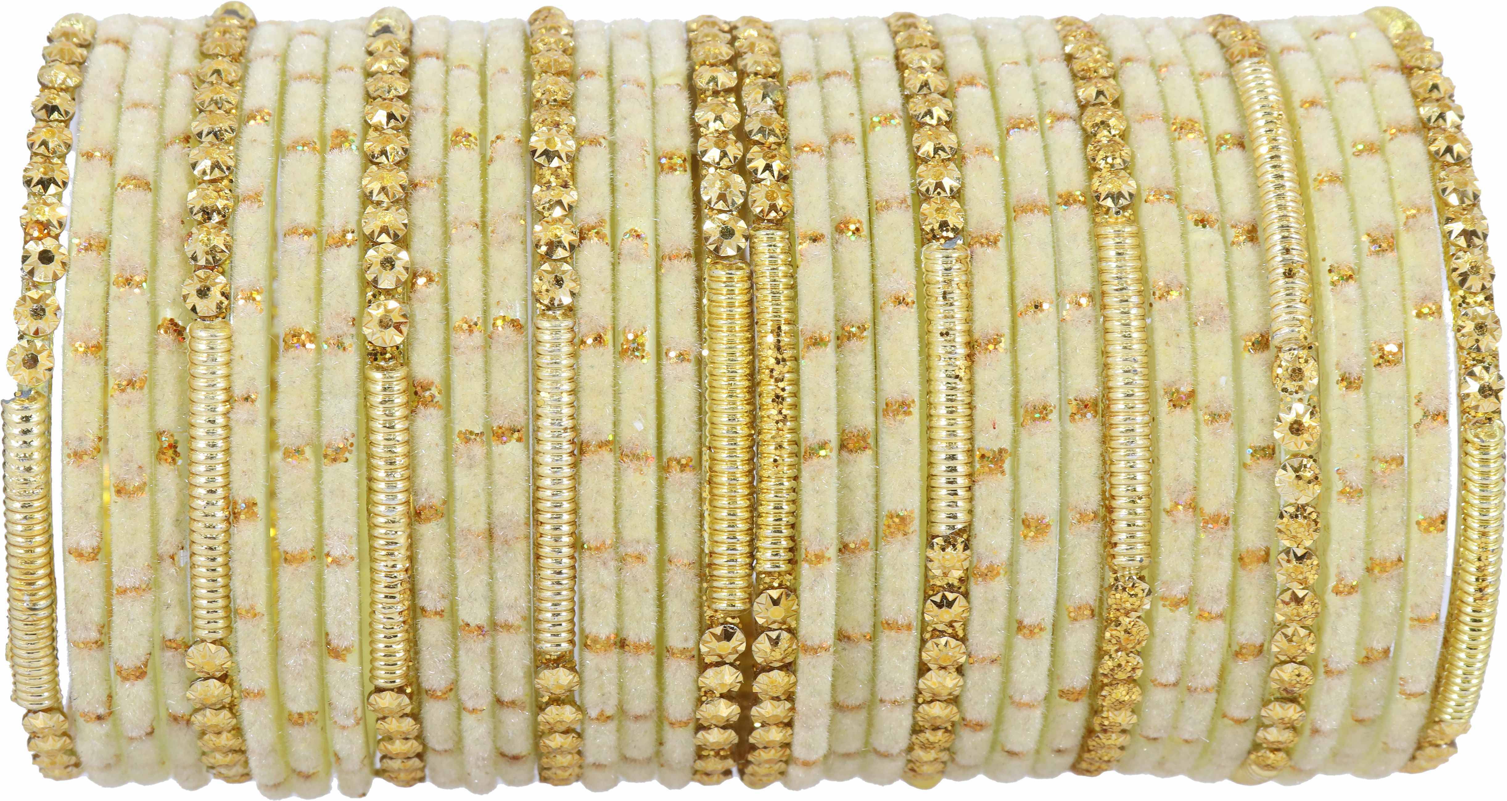 NMII Glass with Velvet worked Bangles, Beads Adhesive spreads with Glitter Bangles, Pack of 34 bangles