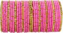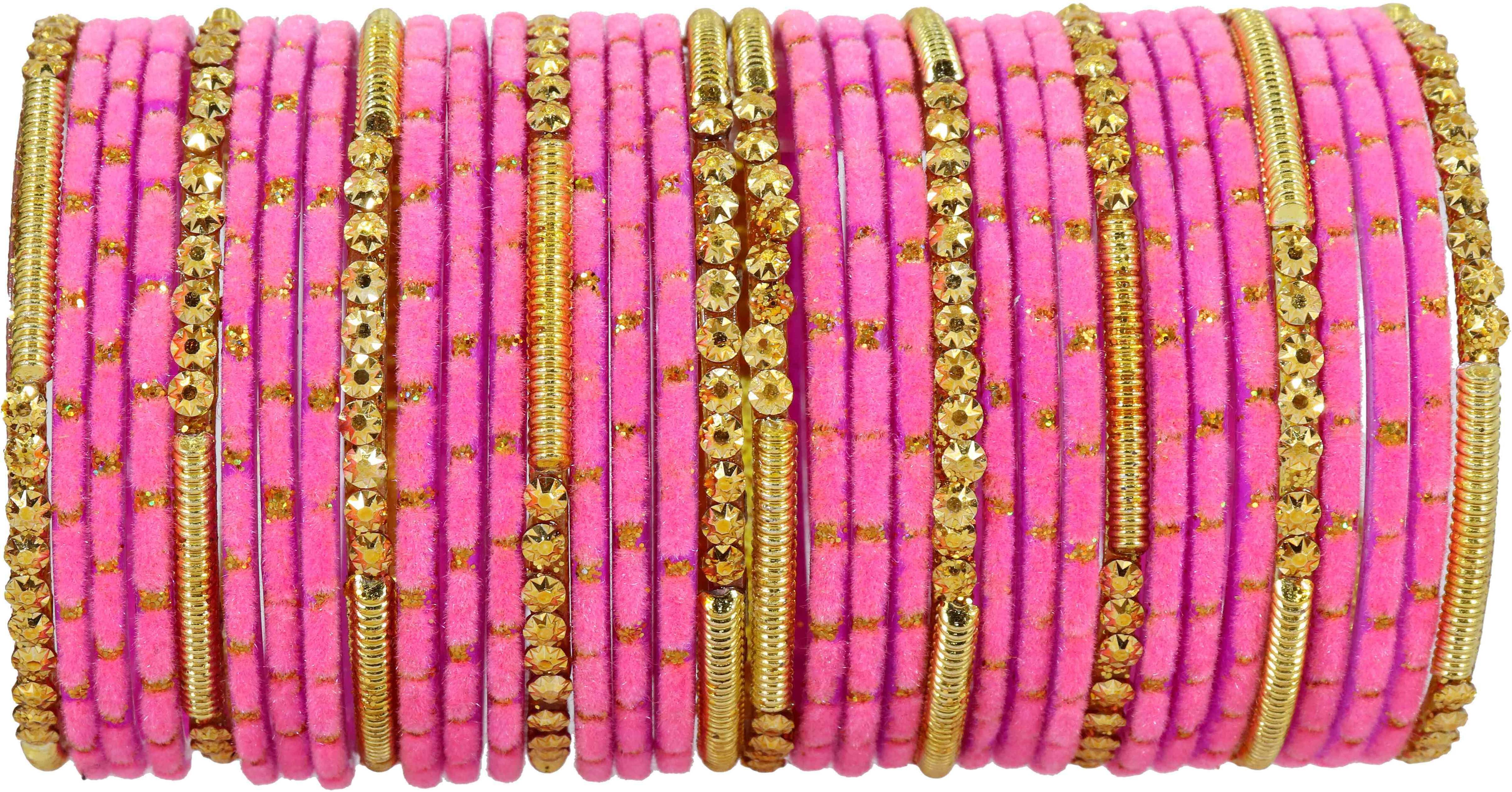 NMII Glass with Velvet worked Bangles, Beads Adhesive spreads with Glitter Bangles, Pack of 34 bangles