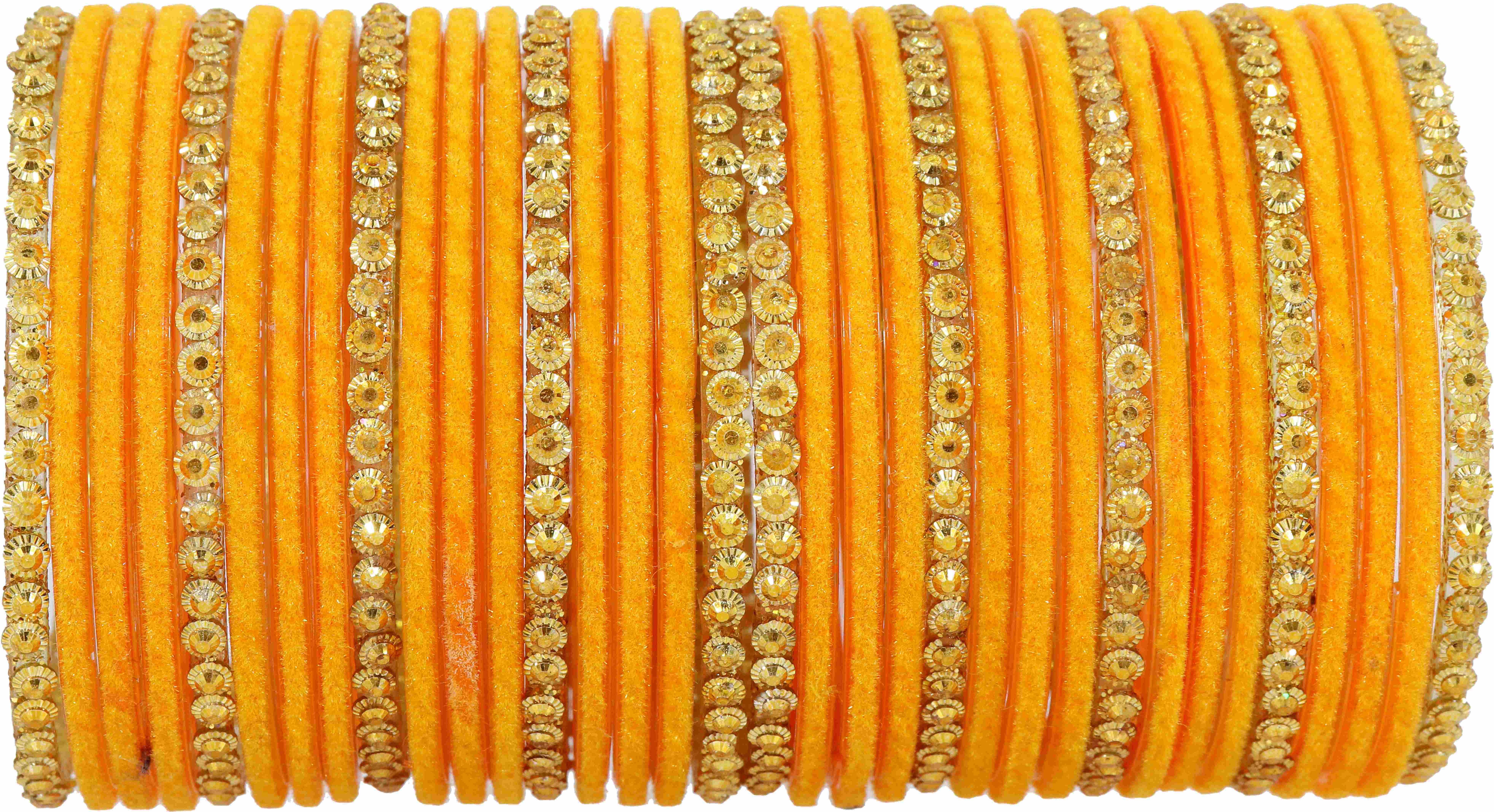NMII Glass with Velvet worked Bangles, Beads Adhesive spreads with Glitter Bangles, Pack of 34 bangles