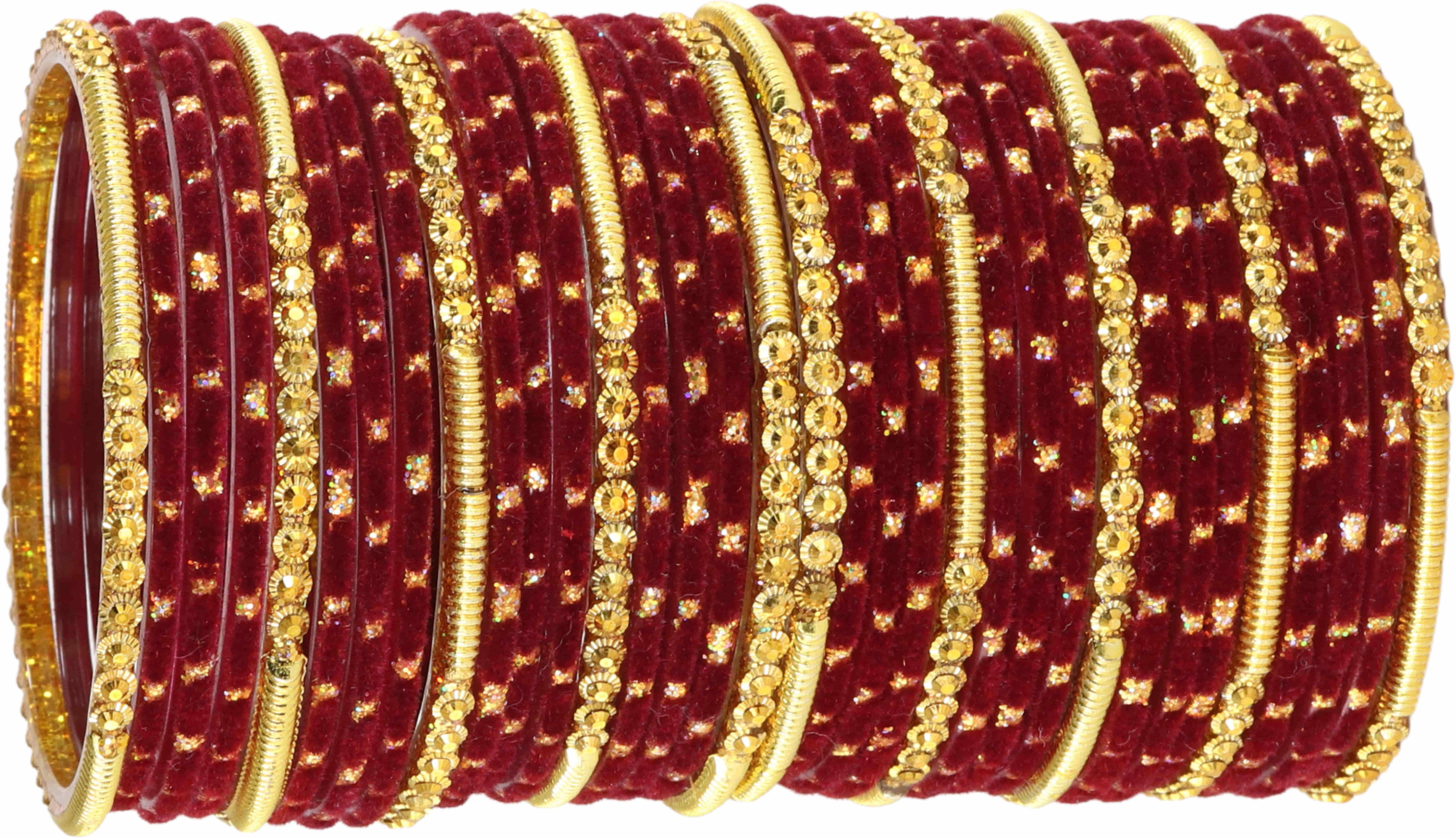 NMII, Features Glass Material with Golden Beads and Glitter Polka Dots Studded Trending design Velvet Bangles Set for Women and girls. This Designer Bangle Set will Enhance The Beauty of your hands. These bangles are part of NMII's latest collection and are Made of Good Quality Glass Material. These Stylish Bangles Have a Premium Finish and are Perfect for Festivals, Parties, Weddings, Engagements, and Daily. Welcome to Our Brand, the world of all types of glass bangles, Metal bangles, Acrylic Bangles, Chuda Sets, Bridal Chuda sets, Kaleere sets, Kadaa sets, and other Women's Jewelry Accessories. Choose from us, a variety of bangles such as Glass, Metal, Silk thread, Acrylic (plastic), Zircon, Bead-worked, Kundan-worked, Lac material, Electric Light Chudaa, and more, . Please refer to our Size Chart to determine your Wrist size Accurately. CLEANING INSTRUCTIONS: To clean the bangles, use a smooth cotton cloth. To ensure their longevity. , Keep the bangles away from Direct water, Perfume, Deodorant, Sunlight, and other Chemicals, and store them in an airtight zip-lock pouch. Thank you for choosing and buying our Products. If you find any problems, then Please refer to our product description For Sizes and Care Instructions. We have been selling products since 2016.