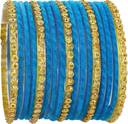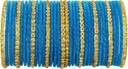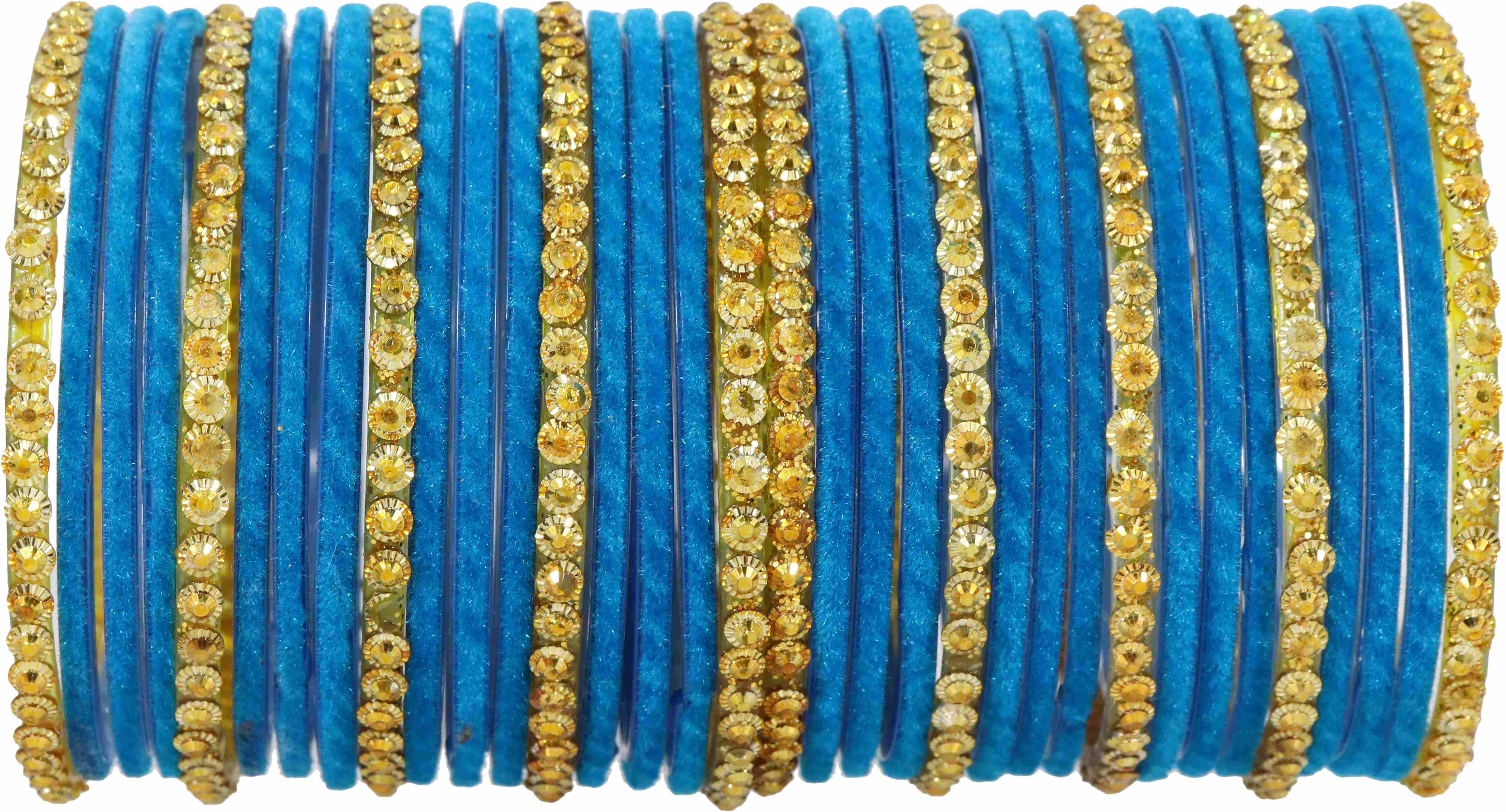 NMII Glass with Velvet worked Bangles, Beads Adhesive spreads with Glitter Bangles, Pack of 34 bangles