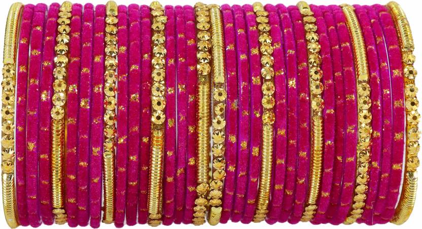 NMII, Features Glass Material with Golden Beads and Glitter Polka Dots Studded Trending design Velvet Bangles Set for Women and girls. This Designer Bangle Set will Enhance The Beauty of your hands. These bangles are part of NMII's latest collection and are Made of Good Quality Glass Material. These Stylish Bangles Have a Premium Finish and are Perfect for Festivals, Parties, Weddings, Engagements, and Daily. Welcome to Our Brand, the world of all types of glass bangles, Metal bangles, Acrylic Bangles, Chuda Sets, Bridal Chuda sets, Kaleere sets, Kadaa sets, and other Women's Jewelry Accessories. Choose from us, a variety of bangles such as Glass, Metal, Silk thread, Acrylic (plastic), Zircon, Bead-worked, Kundan-worked, Lac material, Electric Light Chudaa, and more, Available . Please refer to our Size Chart to determine your Wrist size Accurately. CLEANING INSTRUCTIONS: To clean the bangles, use a smooth cotton cloth. To ensure their longevity. , Keep the bangles away from Direct water, Perfume, Deodorant, Sunlight, and other Chemicals, and store them in an airtight zip-lock pouch. Thank you for choosing and buying our Products. If you find any problems, then Please refer to our product description For Sizes and Care Instructions. We have been selling products since 2016.