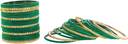 NMII Glass with Velvet worked Bangles, Beads Adhesive spreads with Glitter Bangles, Pack of 34 bangles