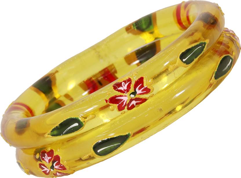 NMII Glass with Flowers and Leaf Printed Sleek Design Kada Set For Women and Girls