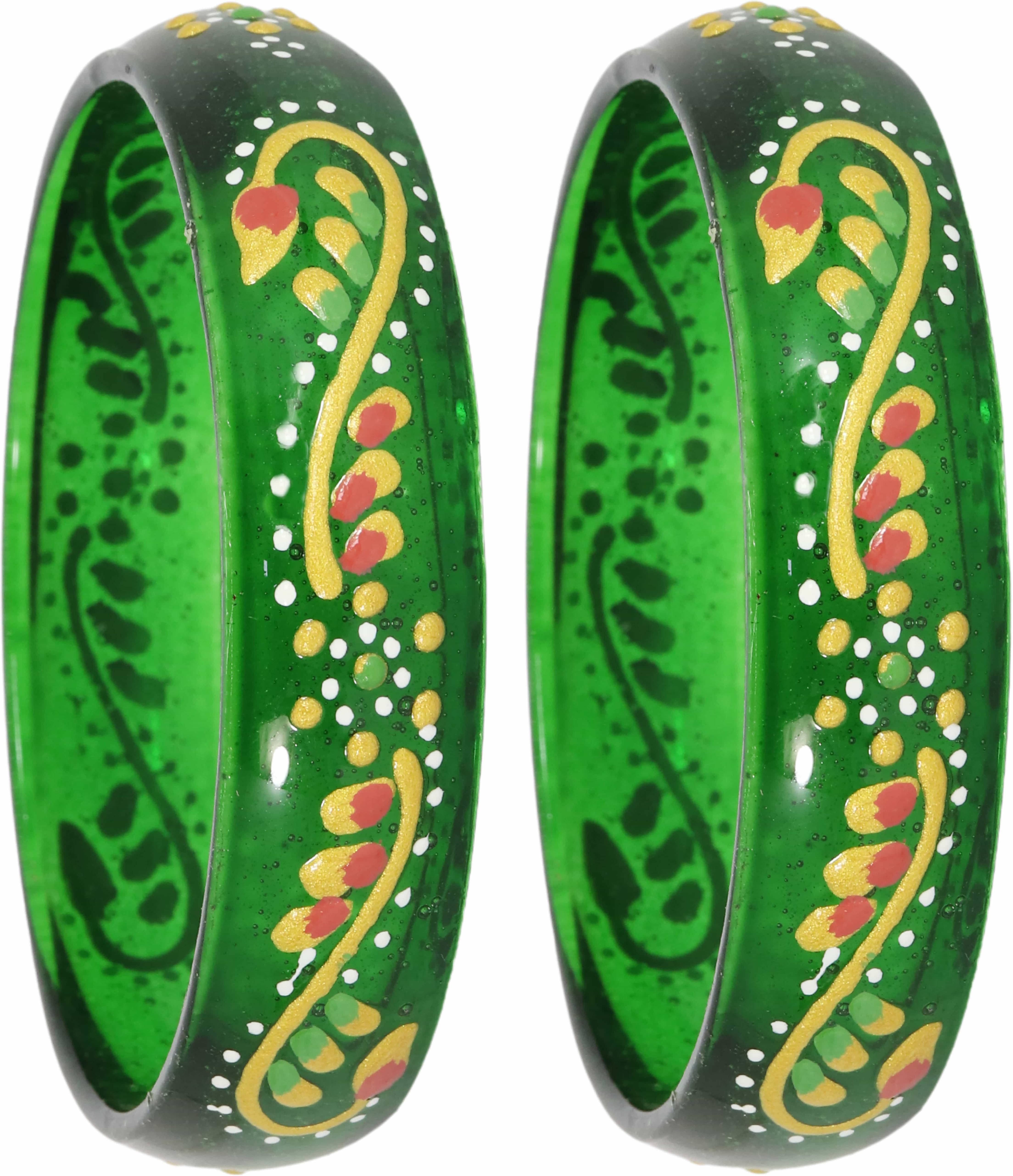 NMII's Traditional Glass Kada Bangles Set with Colorful Polka Dots Print Women & Girls is a stunning piece that combines modern style with timeless beauty. Crafted from high-quality Glass material. It is durable and features a vibrant color symbolizing love, passion, and new beginnings. The intricate design showcases NMII's skillful craftsmanship, ensuring you shine on your special day. The set also doubles as a versatile piece of bridal jewelry, complementing a wide range of outfits, including classic sarees and modern lehengas. NMII prides itself on offering the finest quality, timeless style, and unwavering commitment to tradition. The set is designed to make your day extra special, ensuring you look and feel your best. Elevate your bridal ensemble with NMII's Glass Kada Set and make memories that will last a lifetime. These NMII's Designer Glass Bangles Set Have a Premium Finish and are Perfect for Weddings, Engagements, Functions, Festival, Party and Daily use. The Brand NMII sells all types of Glass Bangles, Metal Bangles, Acrylic Bangles, Chuda Sets, Kaleera Latkan Sets, Kadas, Bracelets, Women and Girls Traditional to Modern Jewellery, and many More. And Please Refer to our Size Chart to Know your Hand Size Precisely. To maintain longevity, clean bangles with a smooth cotton cloth, avoid direct water, perfume, deodorant, sunlight, and chemicals, and store them in an airtight zip-lock pouch. Thank You For Choosing NMII's Latest Bangles Collection.
