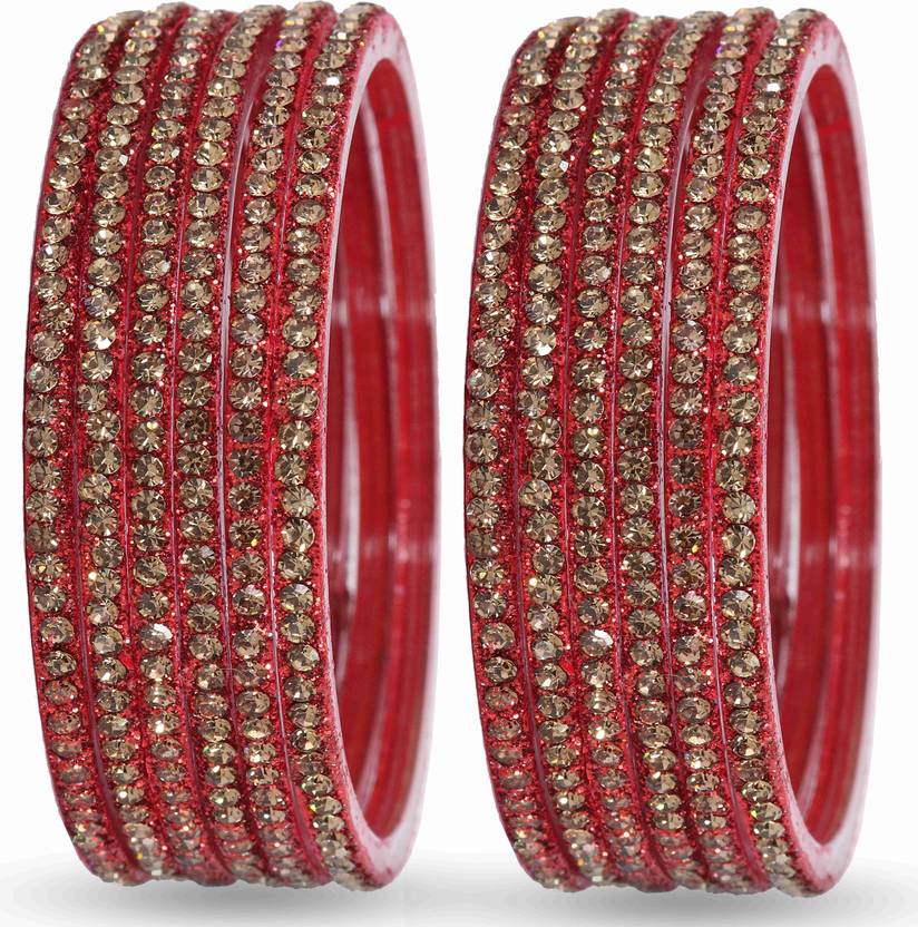 NMII Non Precious Acrylic (Plastic) Base Plastic With Zircon Gemstone Studded Glossy Finished Bangle Set For Women and Girls